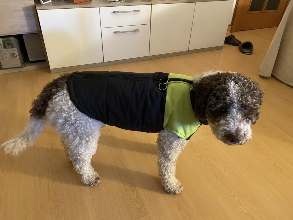 Pues como se ve claramente, un perro grande XL, con un pelaje nuevo no tan XL! El artículo se anunció en un Golden Retreiver, por lo tanto, se compró. Y las palabras BIG DOG VEST en el título. Decepcionante. * En el lado positivo, la calidad es buena, y este tamaño le quedaría a un Bulldog Francés o similar, de 40 cm de espalda.