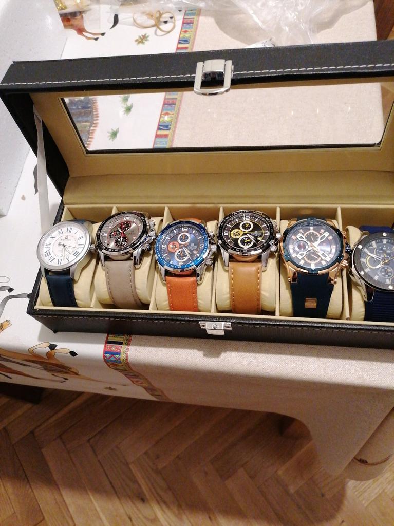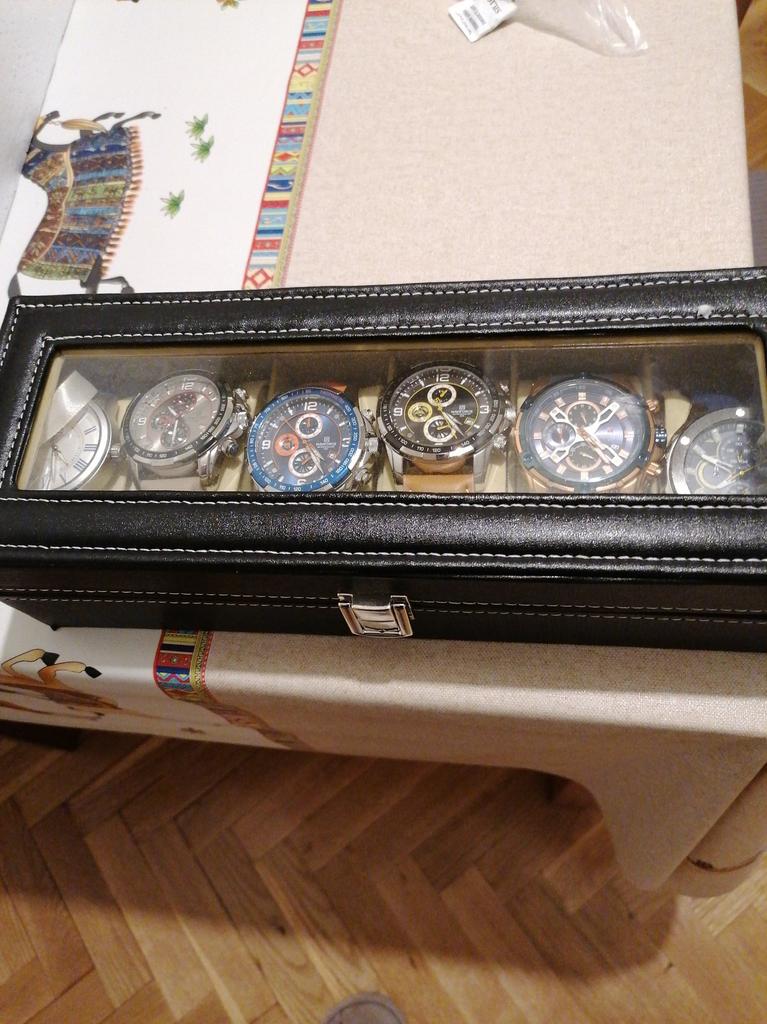 Caja organizadora de almacenamiento de reloj de cuero con 6 ranuras, nuevo soporte mecánico para exhibición de relojes para hombre, Cajas de Regalo de joyería negra