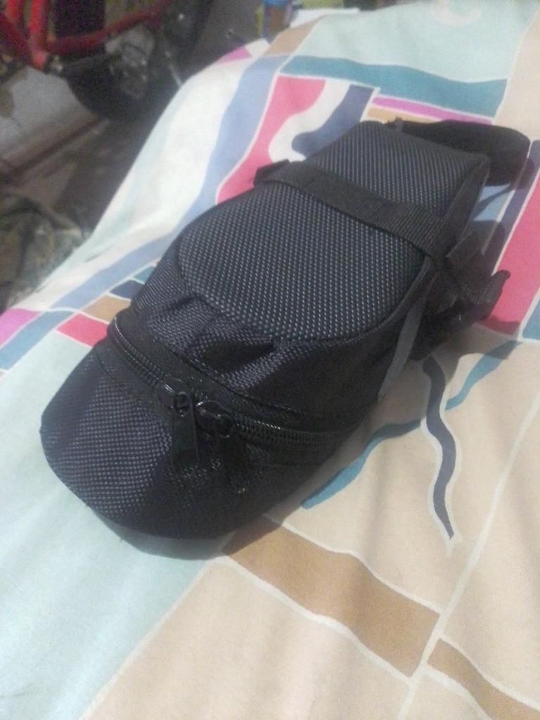 Bonita bolsa de bicicleta, ahora tengo todo lo que necesito conmigo. El montaje fue fácil, todo con velcro.