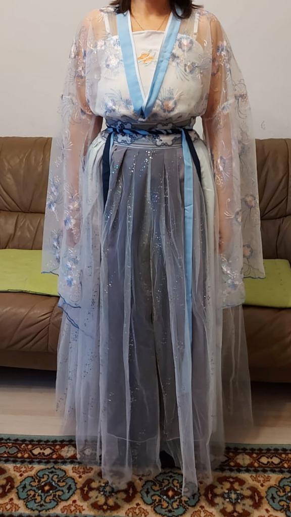Se ve bien desde lejos, pero la calidad de las costuras y las telas individuales no convencen. Por lo tanto solo 3 estrellas. Las entregas fueron rápidas y sin problemas. El set incluye los abanicos de siempre, accesorios para el pelo, pendientes y tattoo.