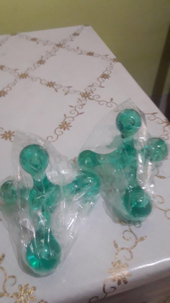 Pedido el 18/11/22 recibido el 24/12/22 en Chisinau, Moldavia. Tiene una forma similar a una pirámide, bolas en los extremos de diferentes tamaños. El material es como "plástico de vidrio" que no sé cómo describir.