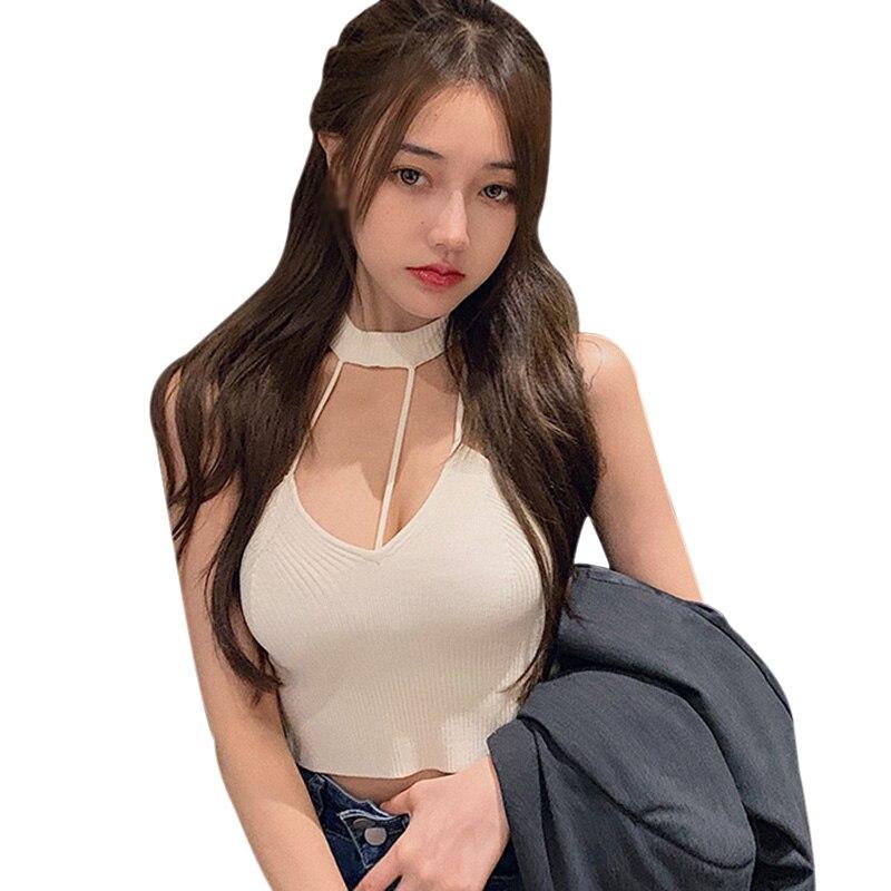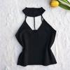 Summer Women Sexy Halterneck Cut-Out Sexy Backless Crop Top Short Vest Knitted Breathable Ladies Sleeveless Strapless Tank Top