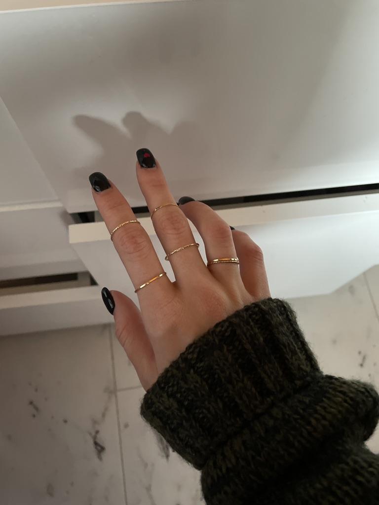 Anillos finos preciosos, algunos se pueden llevar como anillos de falange.