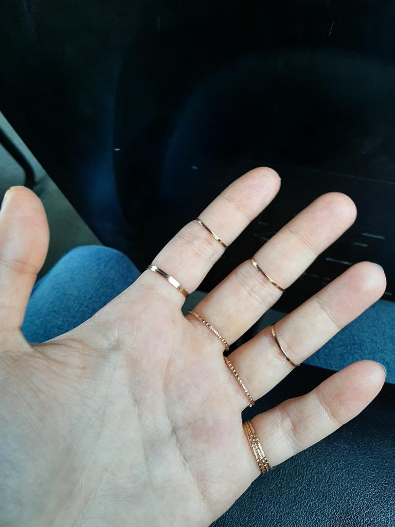 Son demasiado grandes para mis dedos(( Sólo encajan más o menos los 3 anillos más pequeños.