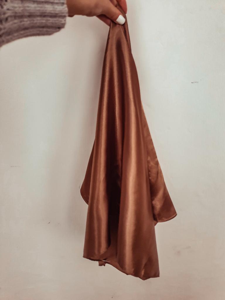 Bonito pañuelo de raso puedes usarlo como bufanda normal pero también como pañuelo para la cabeza . lo pido en el color gris oscuro. pero puedes pedirlo en muchos colores diferentes. lo recibi en 3 semanas
