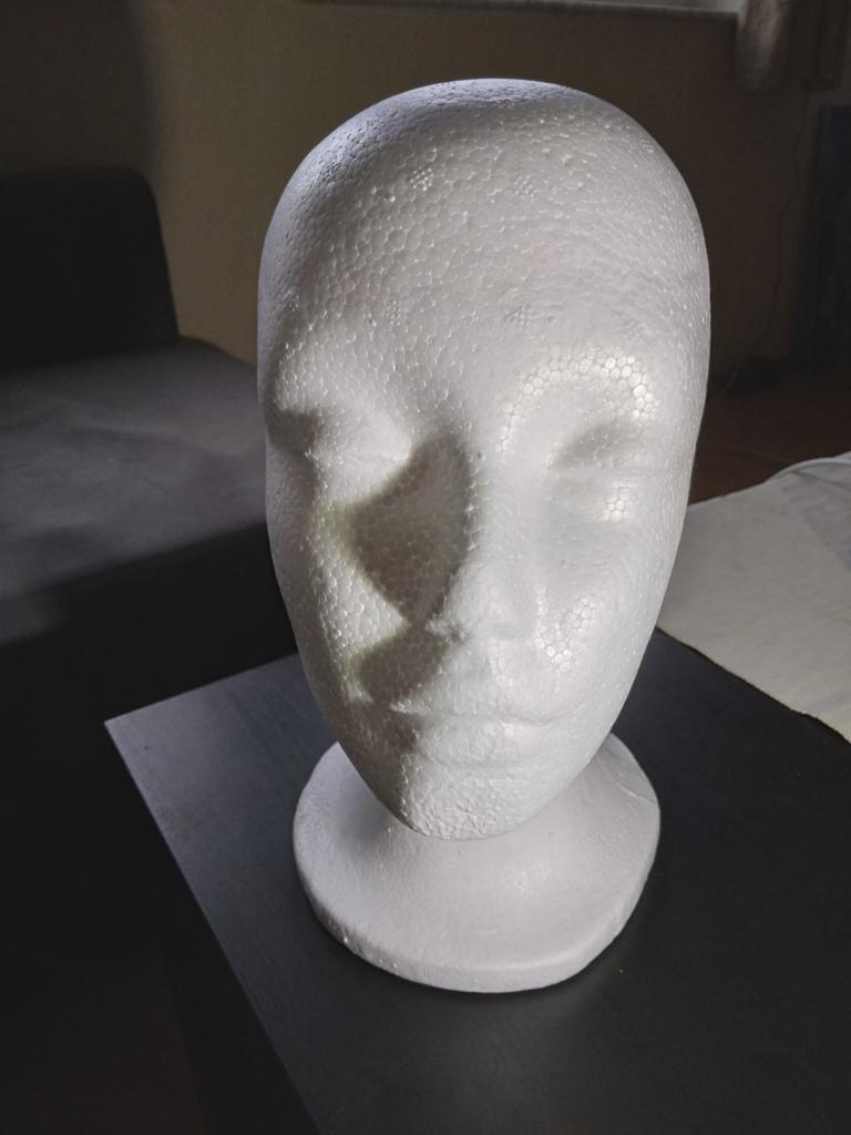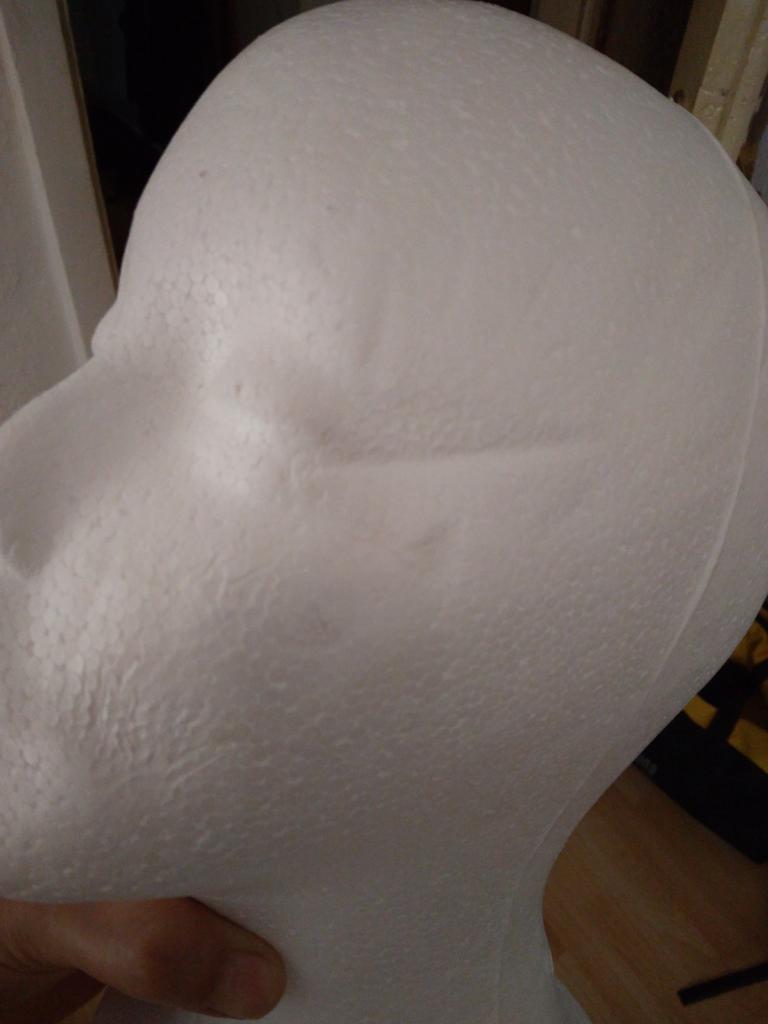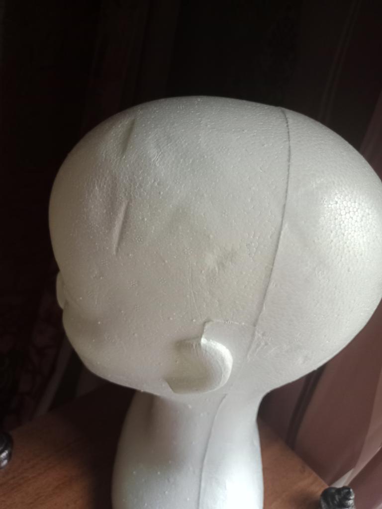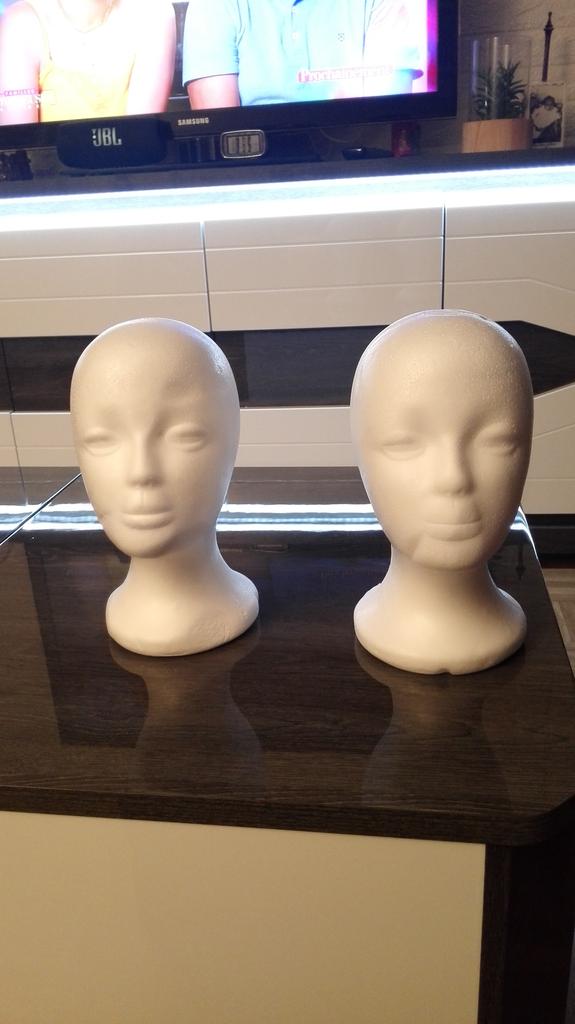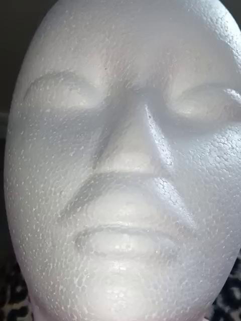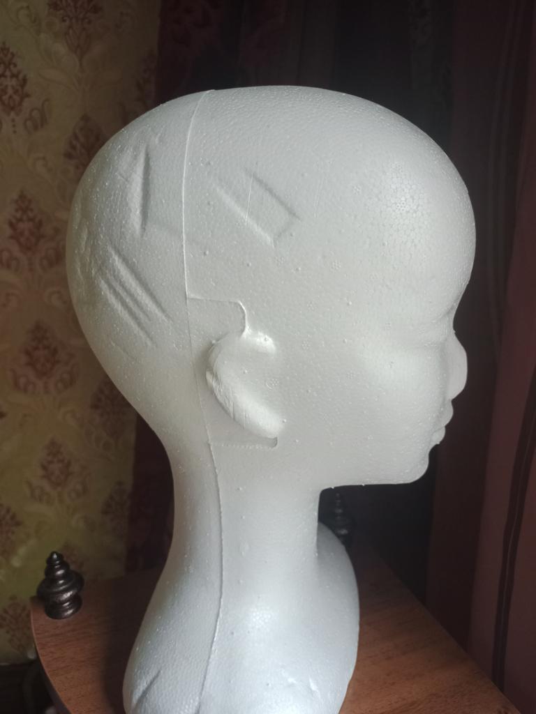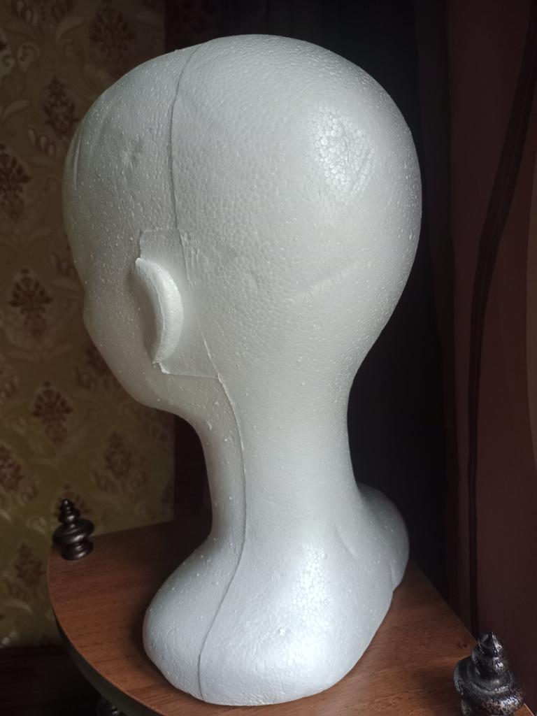 Útil cabezal de poliestireno, para peinar pelucas.