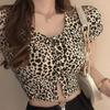 Leopard Print Women's T-Shirt Round Neck Single Breasted Slim Open Navel Short Sleeve One Size Fashionable And Sexy