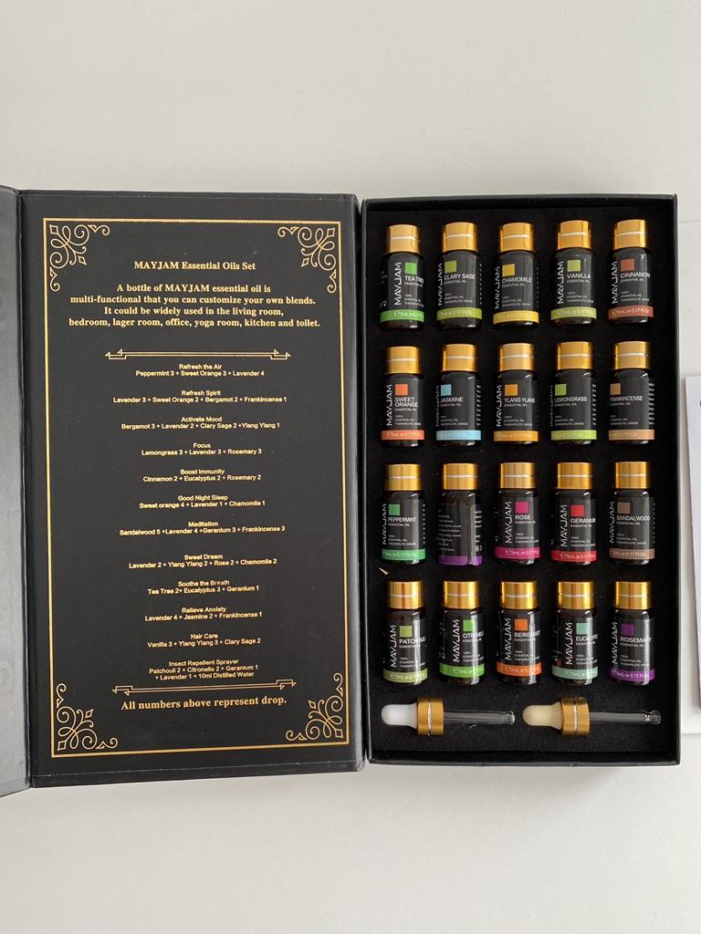 MAYJAM - Juego de regalo de 20 aceites esenciales para difusor de aromaterapia, relajación, spa, masajes, yoga, ayuda para dormir, cuidado del cabello y la piel, perfumes caseros