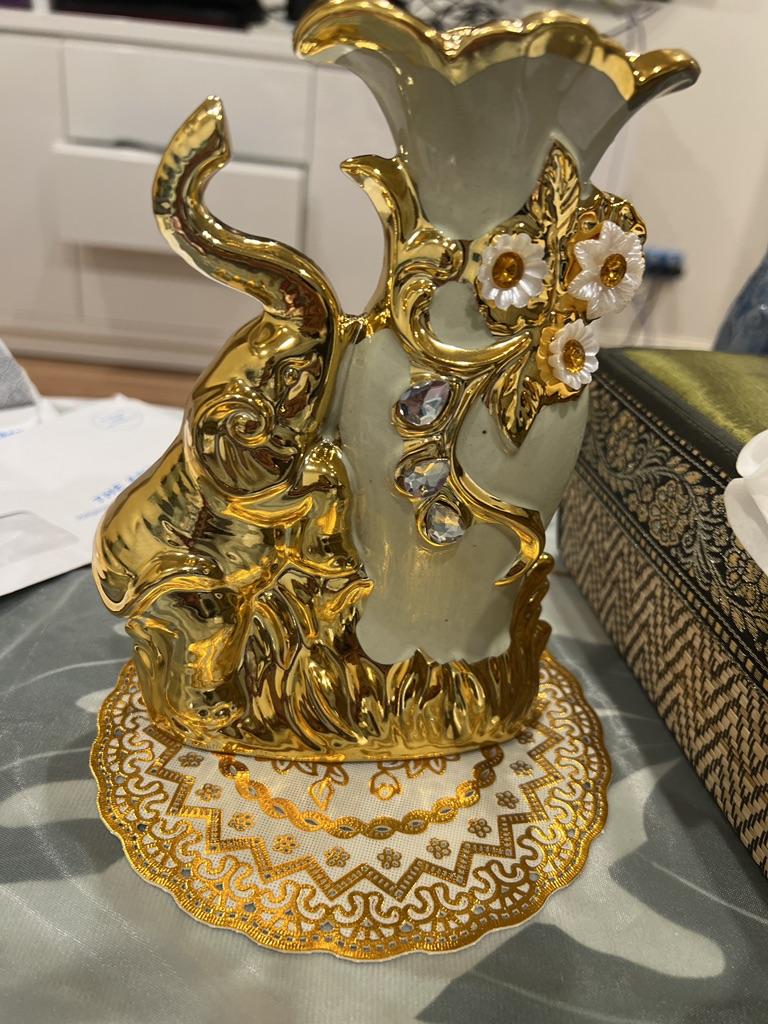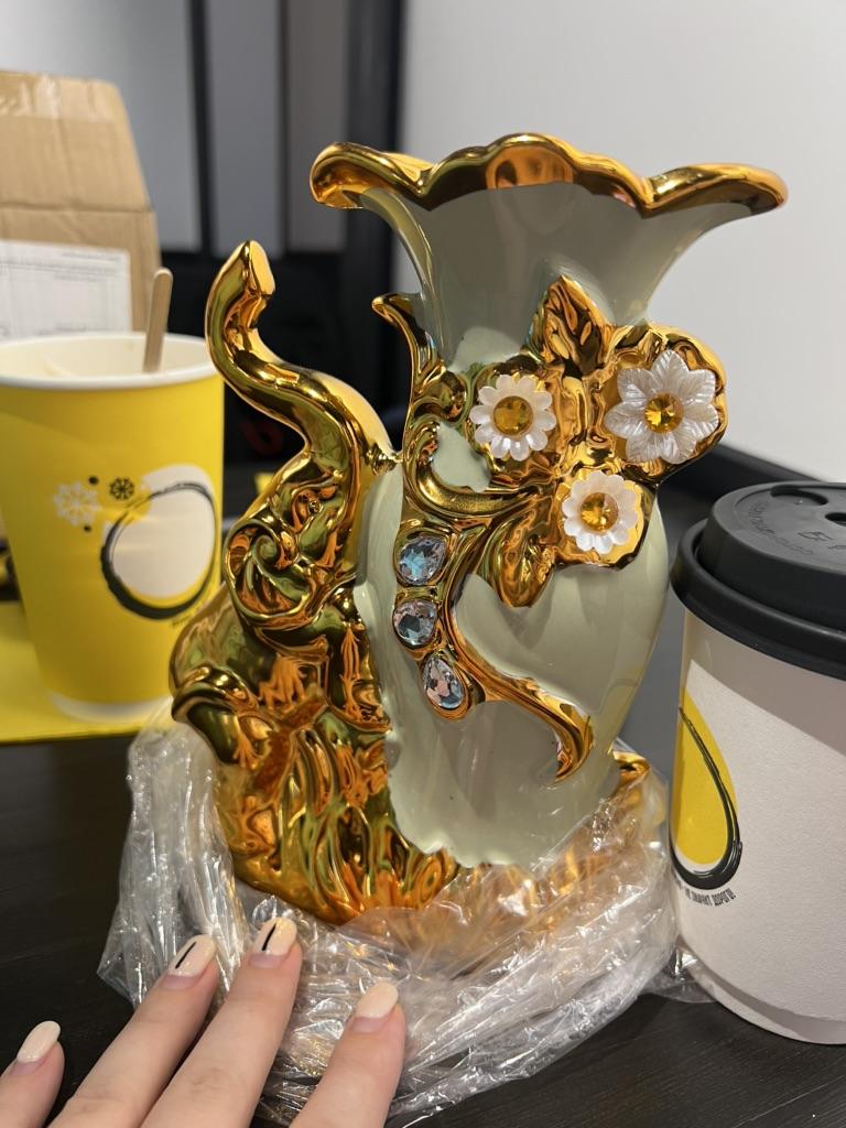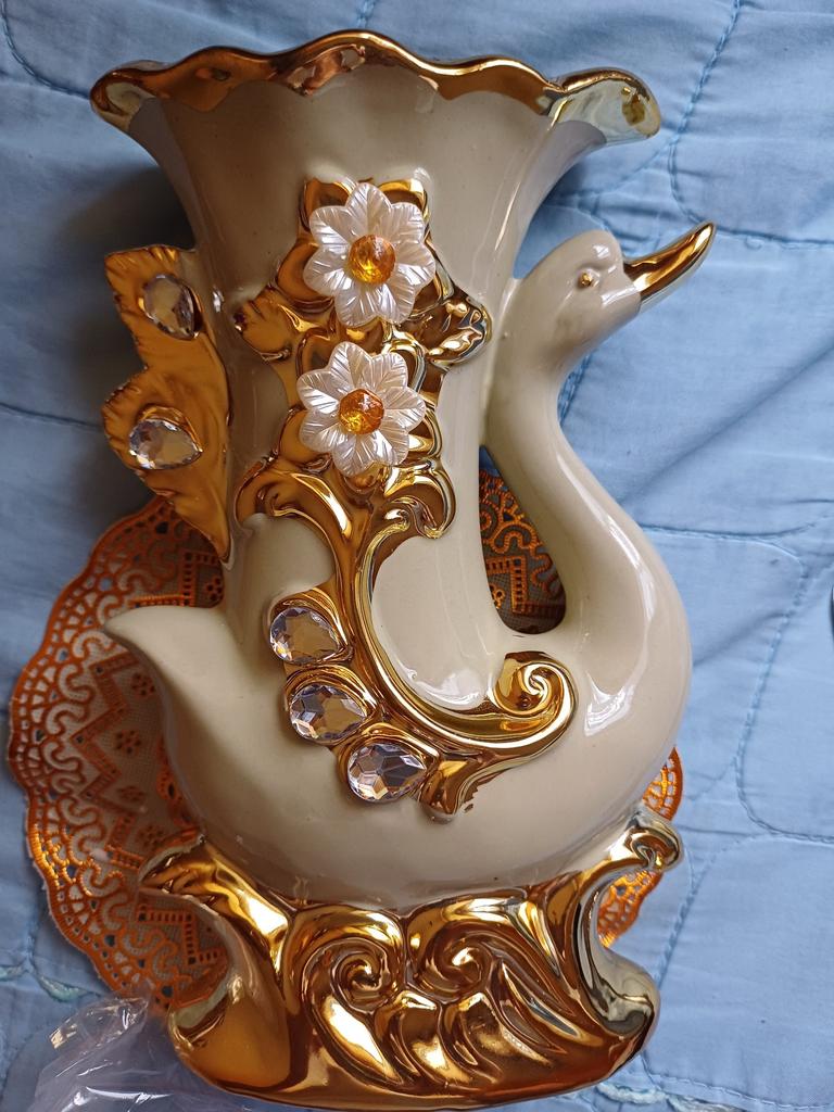 El jarrón está bien y bien embalado, pero el color no es como en la foto, un color oscuro sucio😧