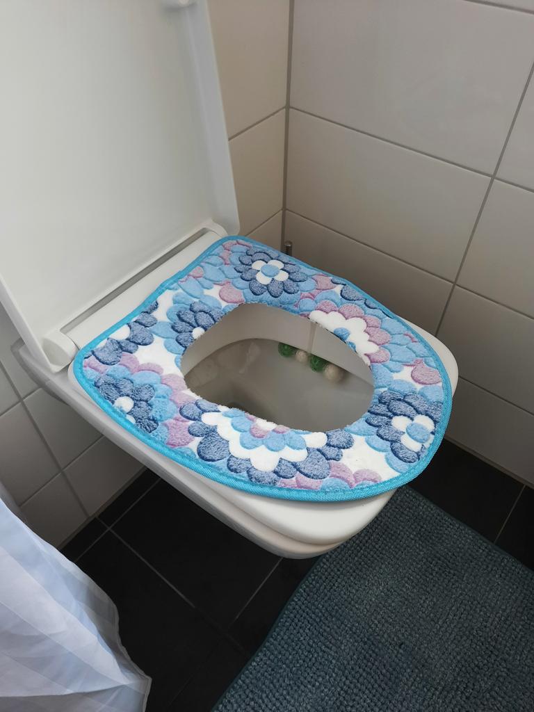 La funda del asiento del inodoro lavable es de buena calidad.👌 Da una impresión robusta.🍀 Se cierra con velcros en la parte inferior. ⭐ La entrega tuvo lugar dentro de 3 semanas. 🛩️ ¡Muchas gracias!💐