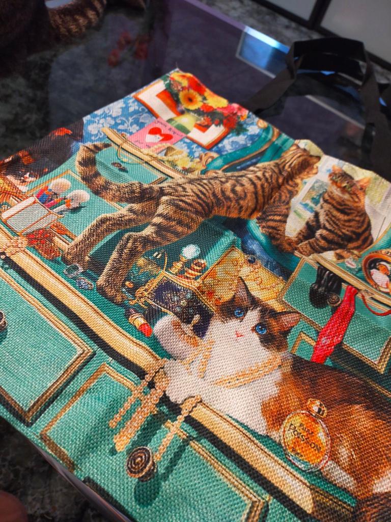 Es una bolsa de tela muy bonita, me ha encantado con los gatitos y los colores que tiene 😍 La calidad de la bolsa esta bien, es resistente y se ve de buena calidad. Tiene bastante capacidad 😊 Perfecta para usar como bolso si quieres o como bolsa para la piscina o playa o para hacer la compra, como bolsa reutilizable 👌🏻
