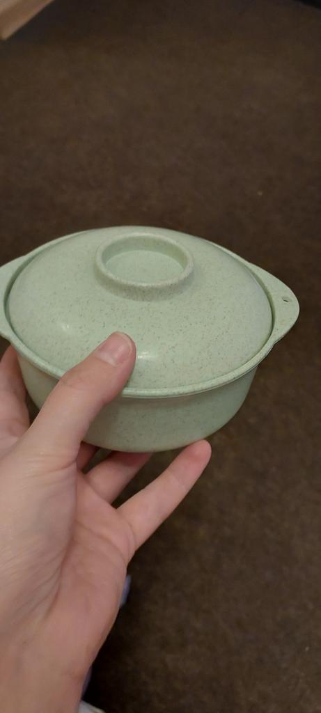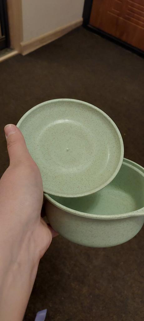 Cuenco bonito. El plástico es duro. Solo es muy pequeño 650 ml. Tiene un desagradable olor químico. Espero que se ventile/lave.