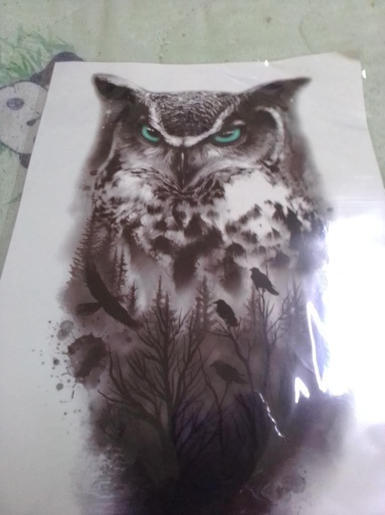 Tatuaje temporal de bosque de búho para hombres, mujeres, niños, niños, León, tatuajes de monstruo falso, pegatina, brújula, tatuajes de transferencia de agua negra para brazo