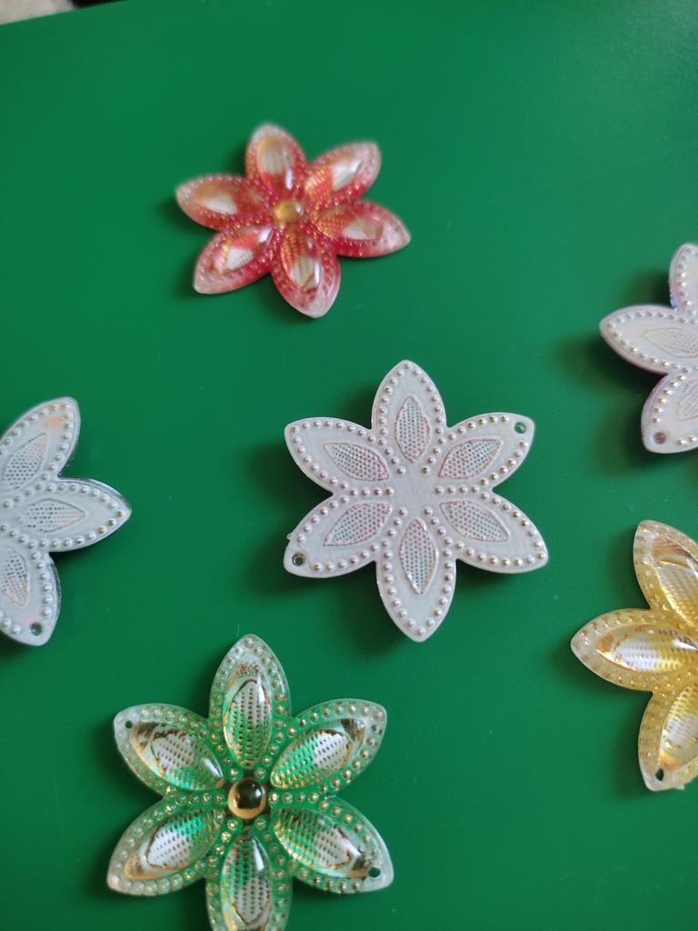 Flores interesantes. Mi hija se dedica a la costura, fue un regalo maravilloso para ella. Las flores están hechas de plástico de buena calidad, los bordes son suaves y no se pegan a la ropa, los colores son bonitos. Gracias JOOM por el regalo.