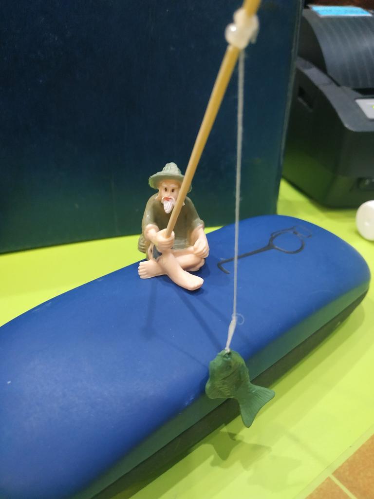 En general, la figura es linda, pero la caña de pescar es un palillo común y corriente🤪 El orificio donde se debe insertar esta caña NO está hecho🤯 Y así sucesivamente