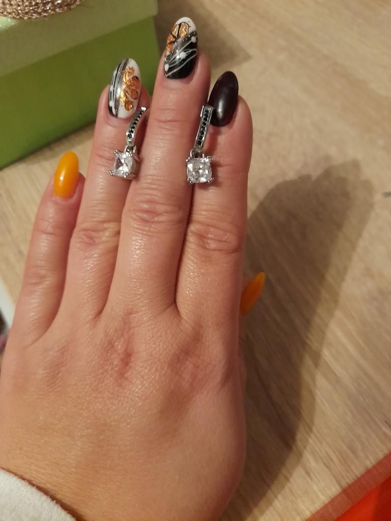 Pendientes absolutamente hermosos de Black Awn, serán una gran adición a cualquier atuendo. Realmente se ven exquisitos, se ven como oro blanco o plata, por cierto, incluso tienen el sello s925. Hechos de cobre con cristal negro pequeño y 1 cristal transparente grande, fuerte clip en la parte posterior. Vienen en una caja de cartón de presentación, por lo que será un regalo perfecto para alguien especial. La entrega tardó 3 semanas. ¡Feliz compra!