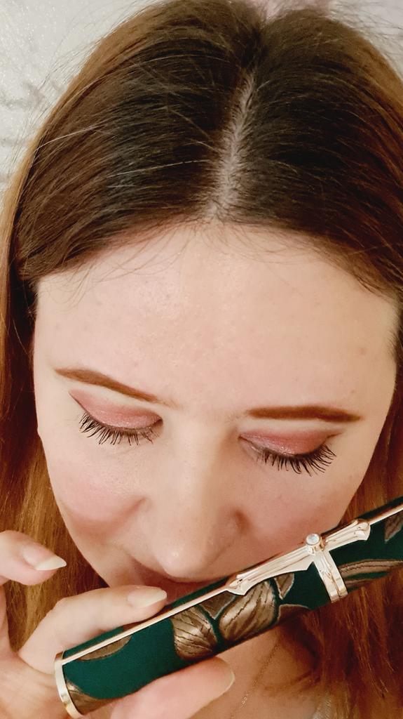 No sé sobre la calidad, pero la máscara se ve hermosa. Embalado en una caja, por cierto, absolutamente sin arrugas. Diseño del tubo: terciopelo verde y plástico dorado.