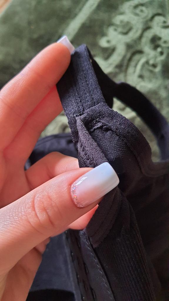 Un poco apretado y por eso hay una sensación de incomodidad. + No es conveniente sujetar sujetadores. Hay un pequeño defecto (ver foto).