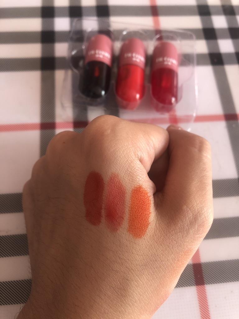 Entonces..probé primero el más anaranjado, es una catástrofe.. me picaron los labios durante una hora tuve que retirarlo con agua.. en cuanto a los otros.. hay que observar muy de cerca para ver el lado brillante.. decepcionada