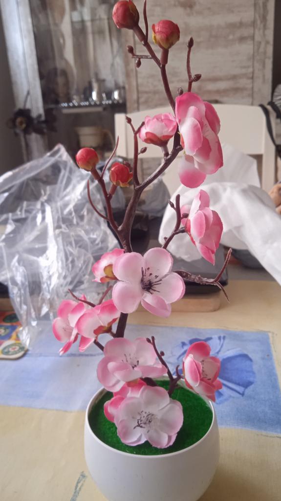 Flor artificial en maceta, flor de mesa de ciruelo decorativa