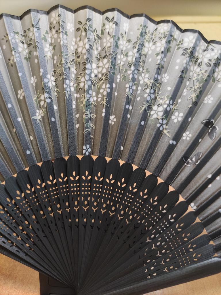 Un buen ventilador, fácil de plegar y abrir. Pero esperaba una calidad diferente. En la parte trasera el ventilador es gris y la tela brilla a través de la luz, esto se puede ver en el último fondo. Muy ligero. En la foto se ve más impresionante.