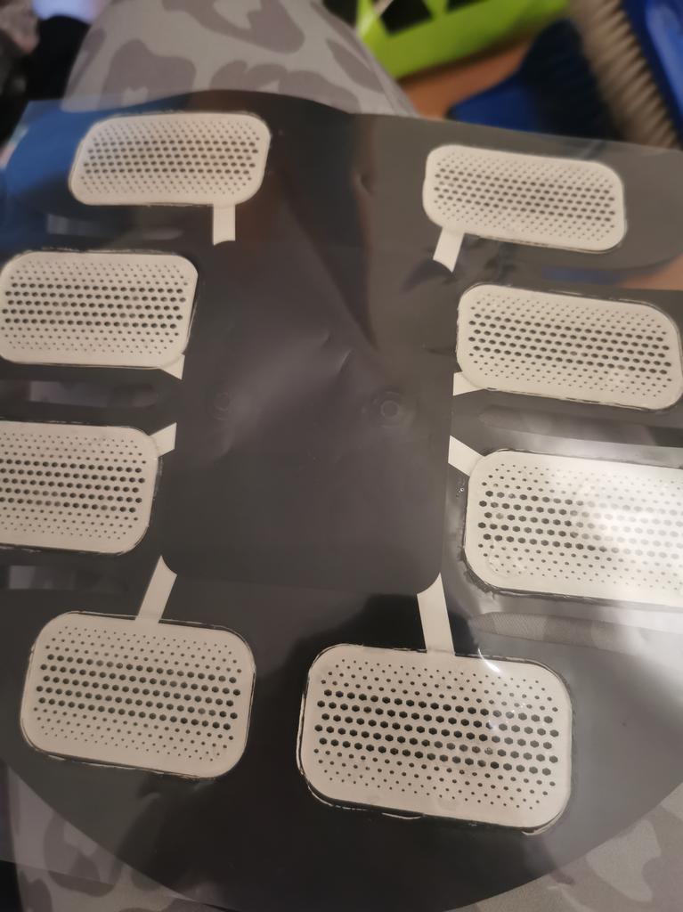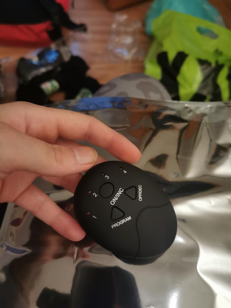 Trabajos, pellizcos, los músculos parecen contraerse un poco. ¿Habrá un efecto? Lo veremos más tarde. Necesita pilas de meñique, no hay ninguna en el set.