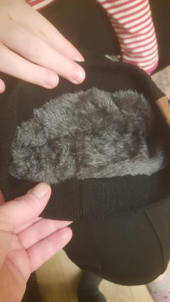 El gorro es fino, el pelo también es fino y corto, la parte superior está cosida de cualquier manera. En dos lugares del hilo se han sacado hebras. La talla está bien, pero la calidad no es muy buena. ¡No recomiendo este producto!
