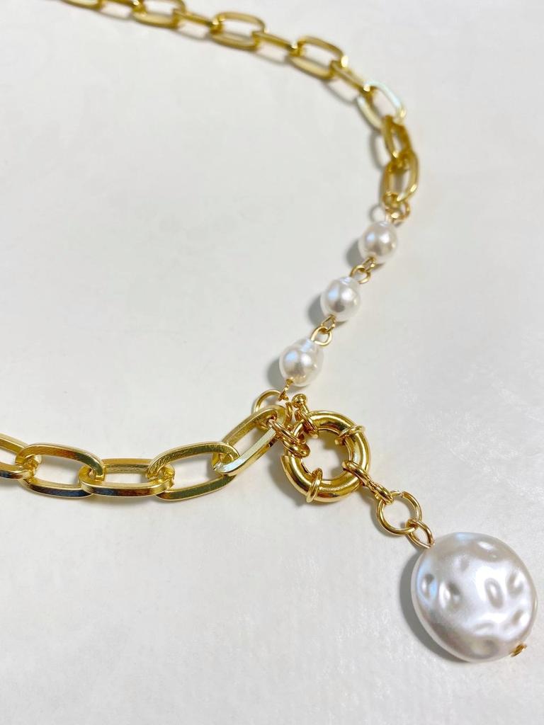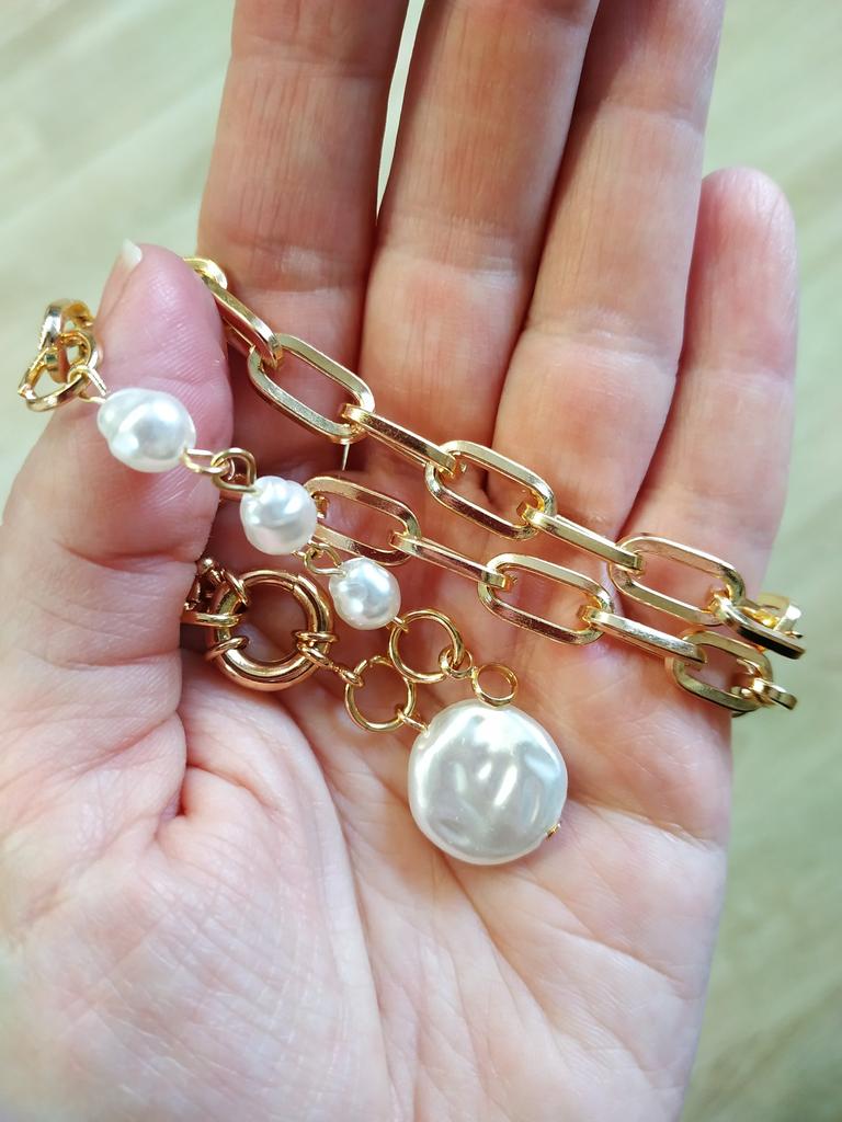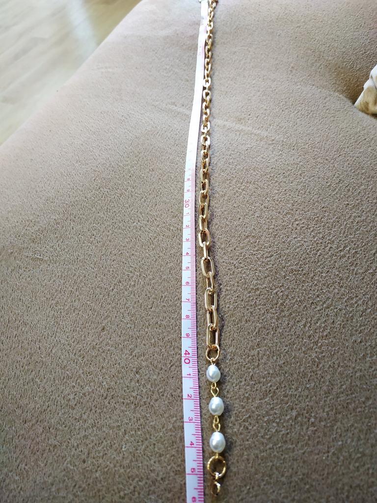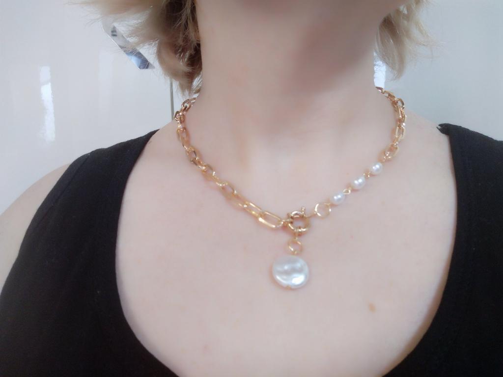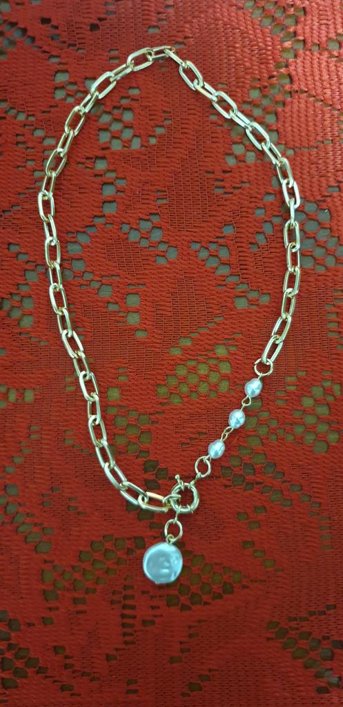 Colgante con perlas muy bonito y elegante, no usar con perfume porque se pone un poco oscuro, por lo demás todo genial para el precio que tiene. Lo uso casi a diario y me encanta!!!