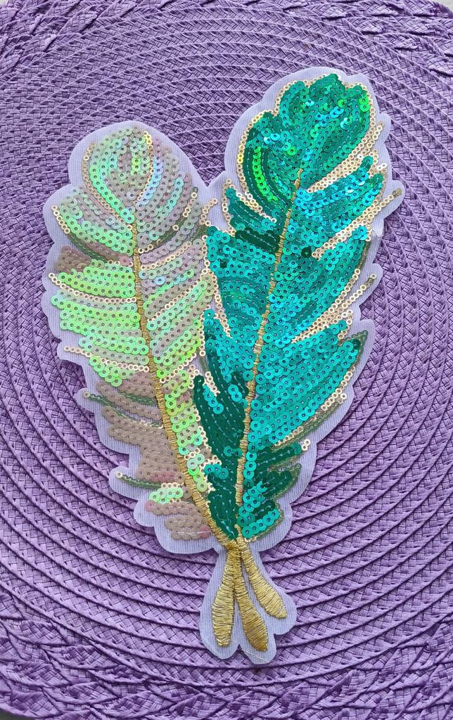 1 pieza de apliques de plumas de lentejuelas, parche bordado para ropa, pegatina de tela para coser, parche artesanal, reparación de costura