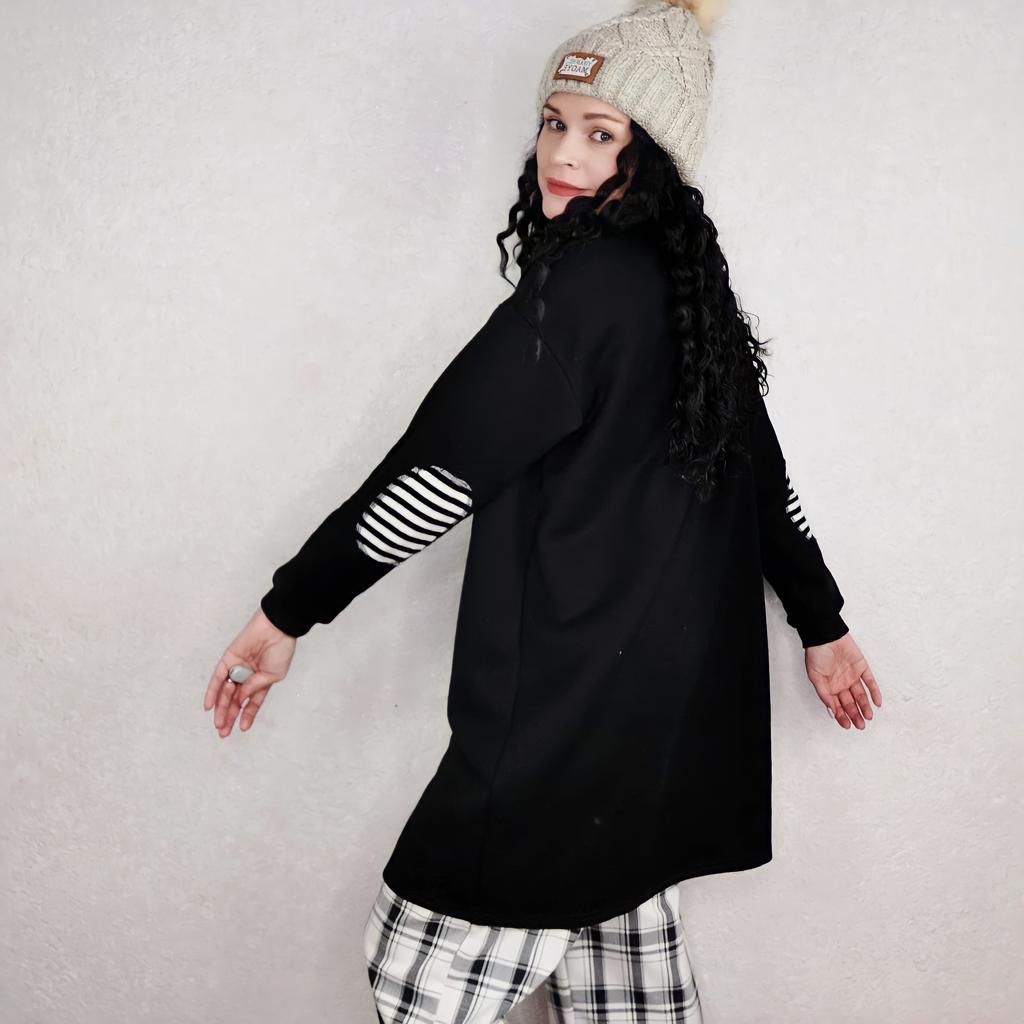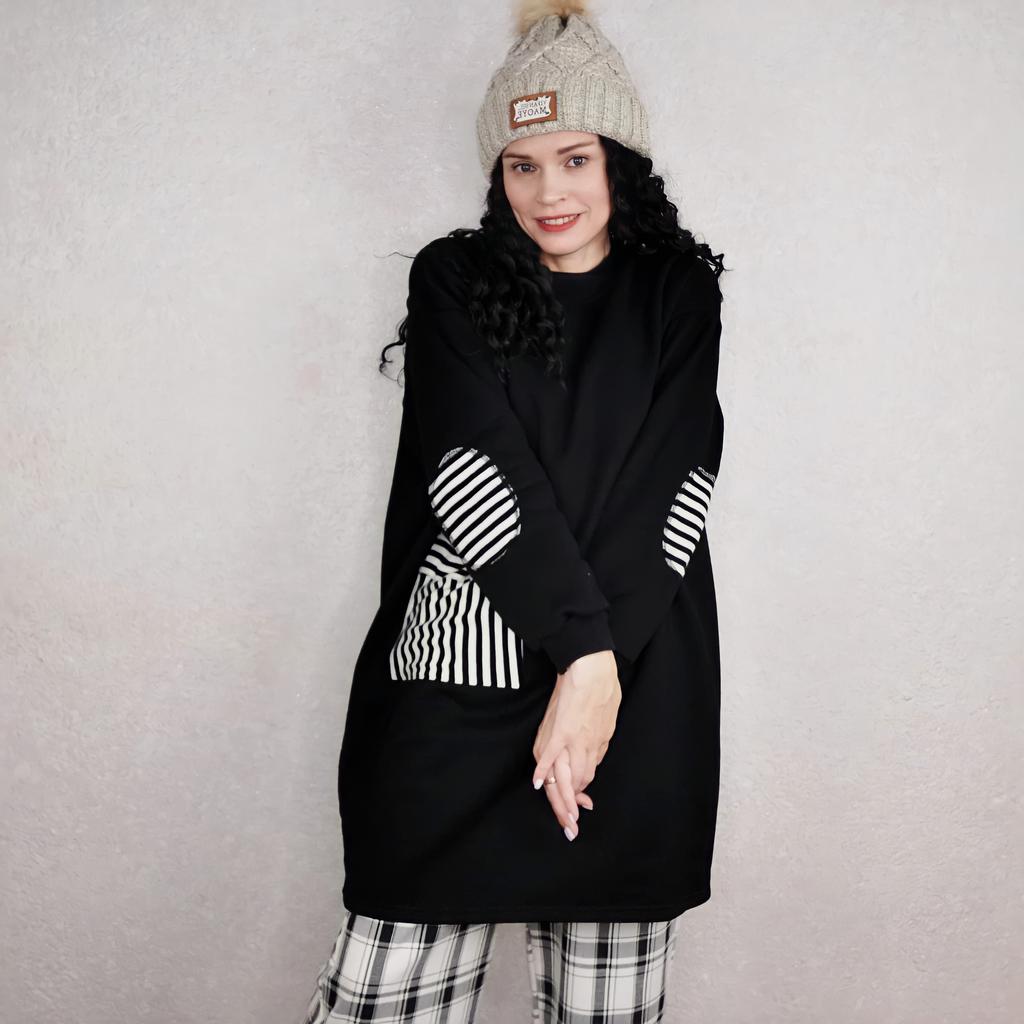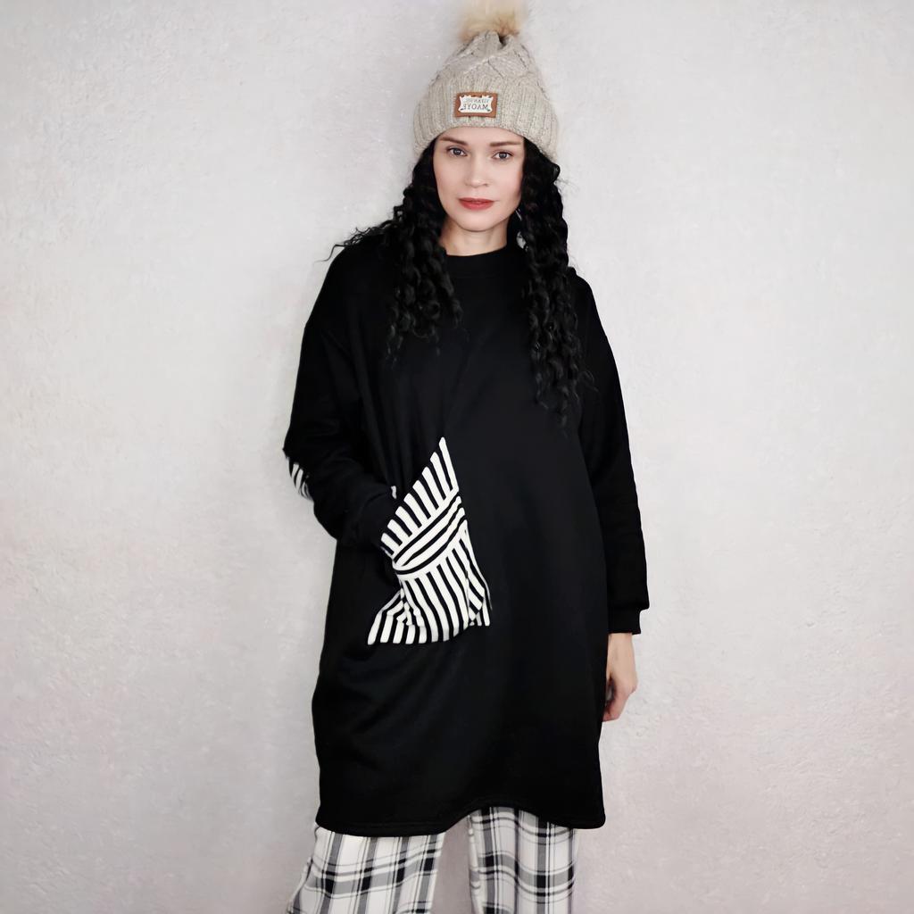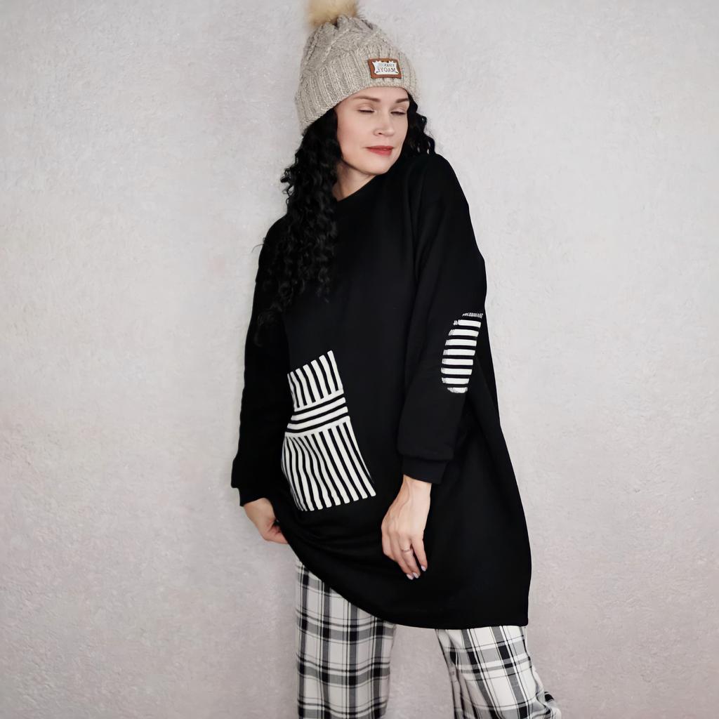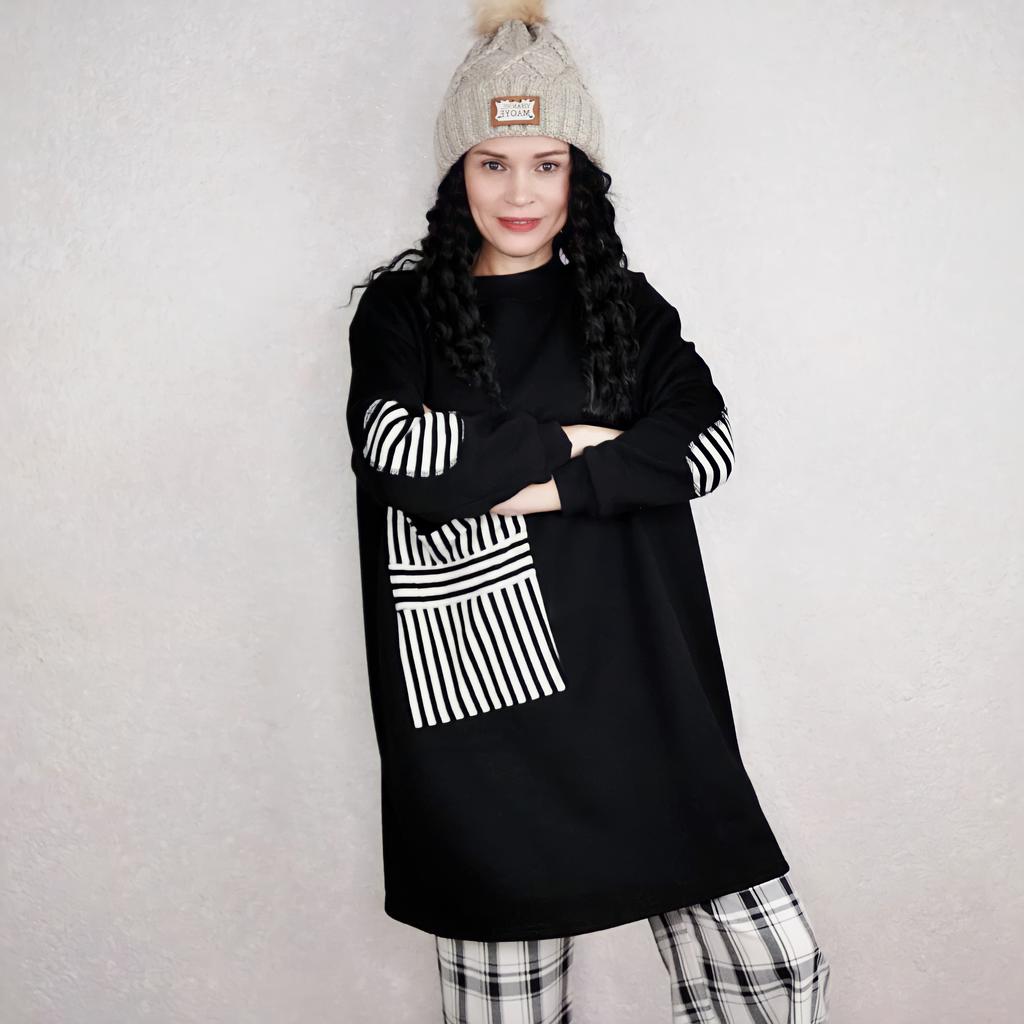 Dimanaf Sudaderas con capucha de gran tamaño para mujer, ropa gruesa a rayas, Jersey negro, Top de retales suelto, invierno 2021