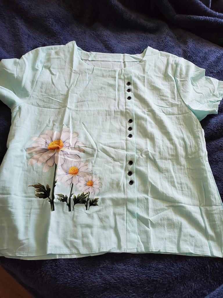 Mujer Verano Cuello Redondo Manga Corta Camiseta Casual Algodón Lino Gráfico Camisa Ocio Moda Suelta Margarita Impreso Blusa Tops Tallas Grandes
