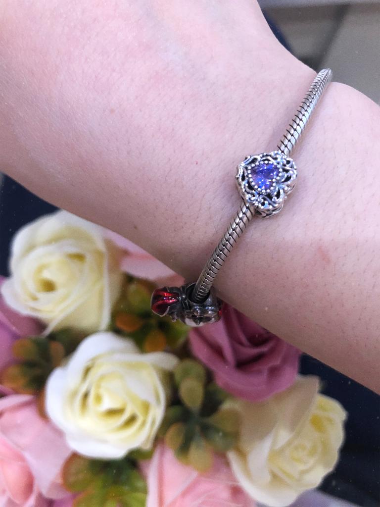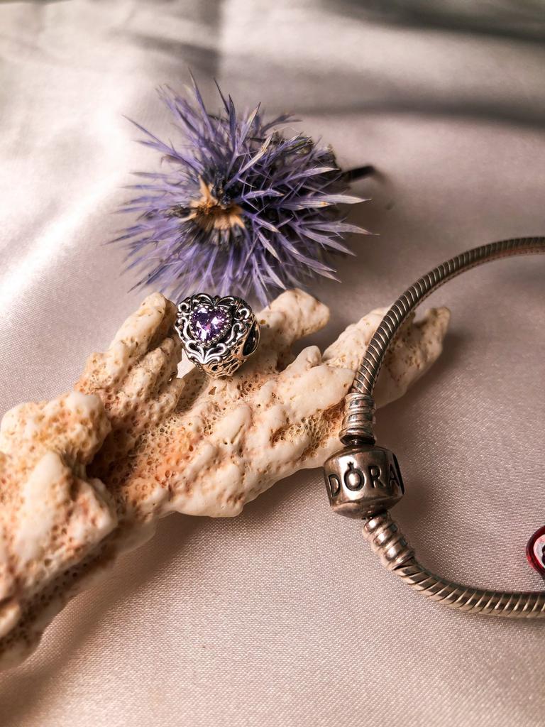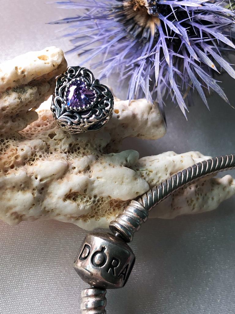 WOSTU Elegant Retro Pattern Purple Zircon Heart Shape 925 Sterling Silver Charm Pendant Beads fit Original Bracelet Bangle DIY Fine Jewelry