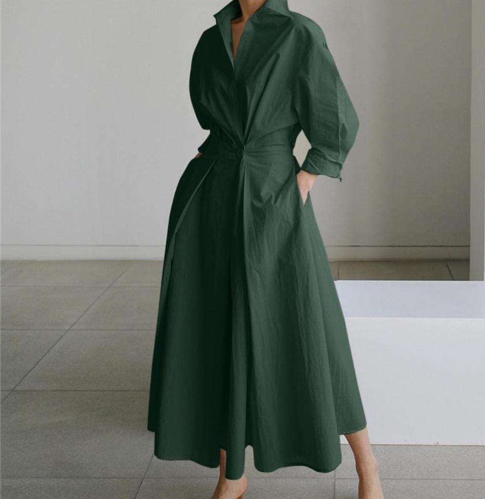ZANZEA Vestido largo suelto informal de manga larga con cuello vuelto para mujer