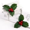 30 Piezas Hojas de Acebo Verdes con Purpurina y Bayas Rojas 3D Parches Adhesivos para Decoración Navideña, Adorno de Mesa, Accesorios de Pegatinas