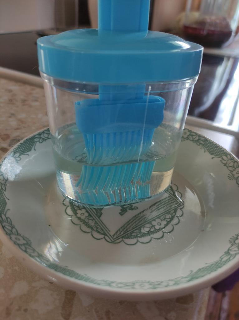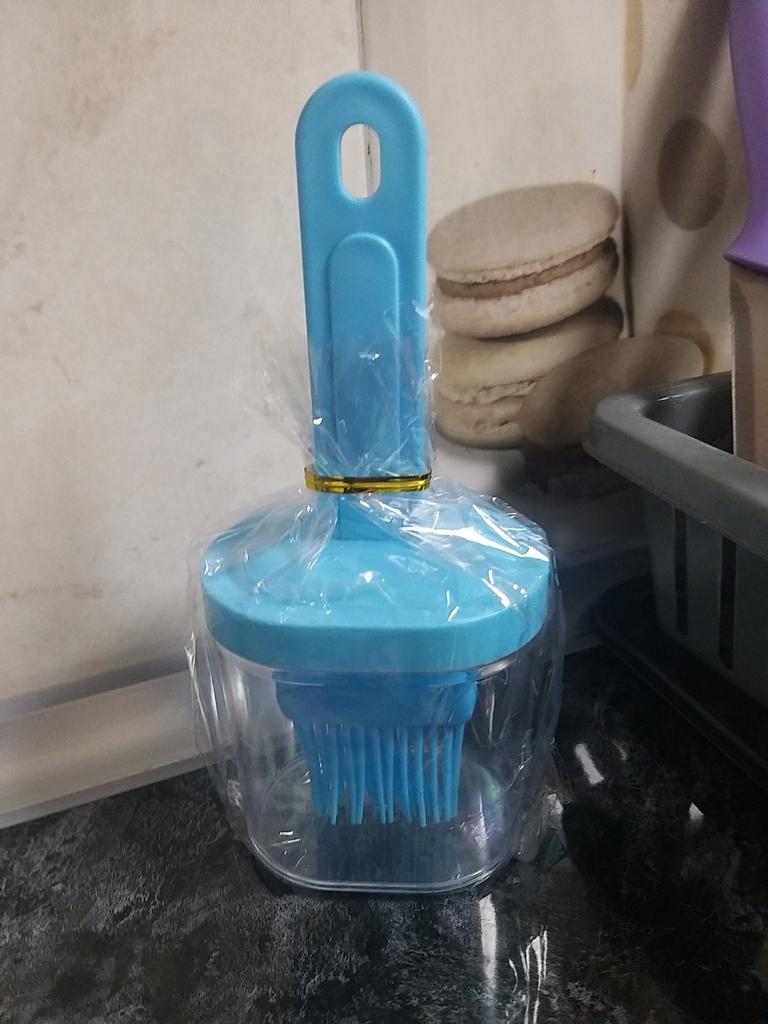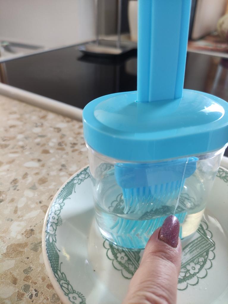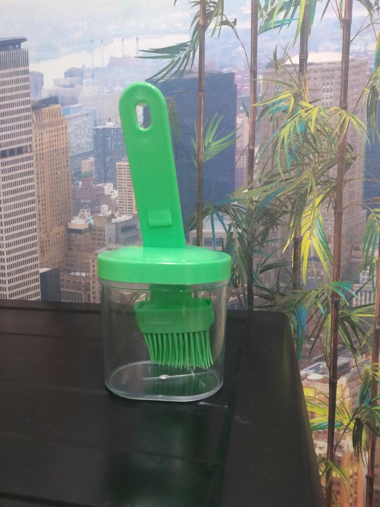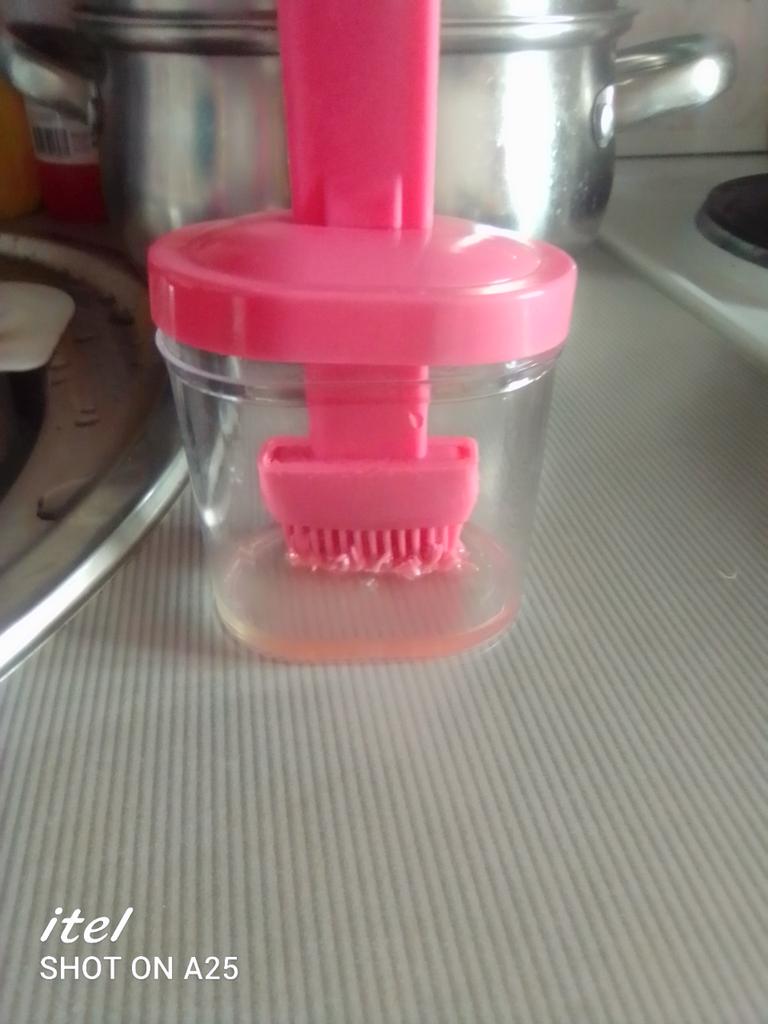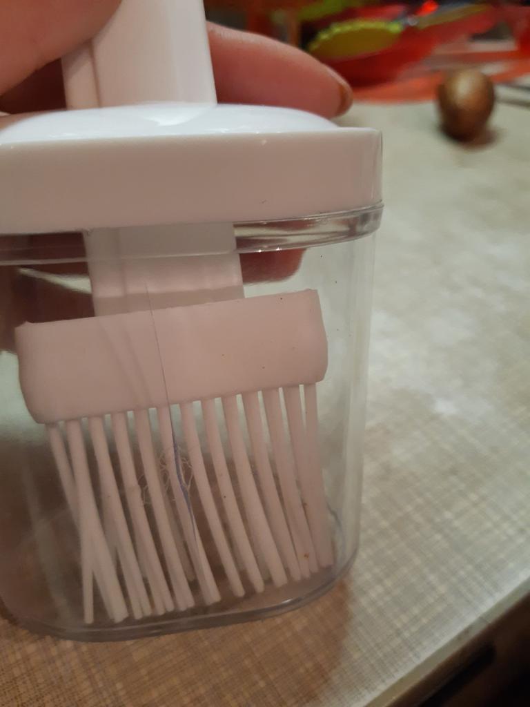Un recipiente cómodo, siempre echaba el aceite en una taza y usaba un cepillo de silicona, y si quedaba aceite había que verterlo en alguna parte, y aquí todo se combina, muy conveniente.