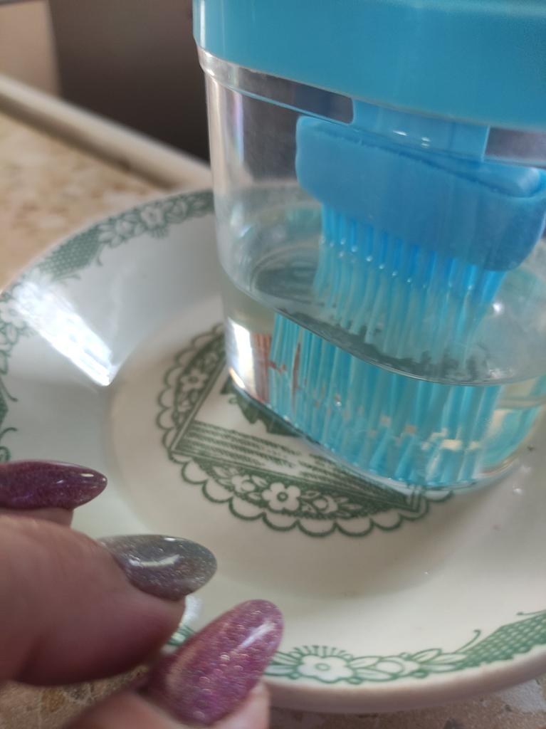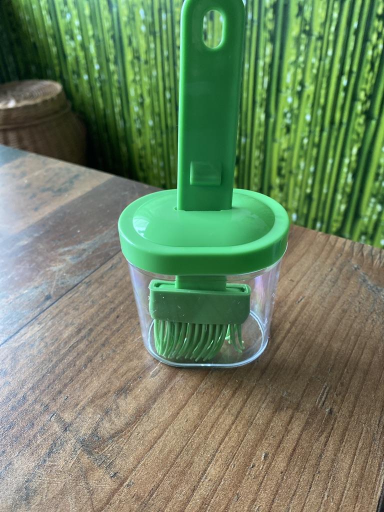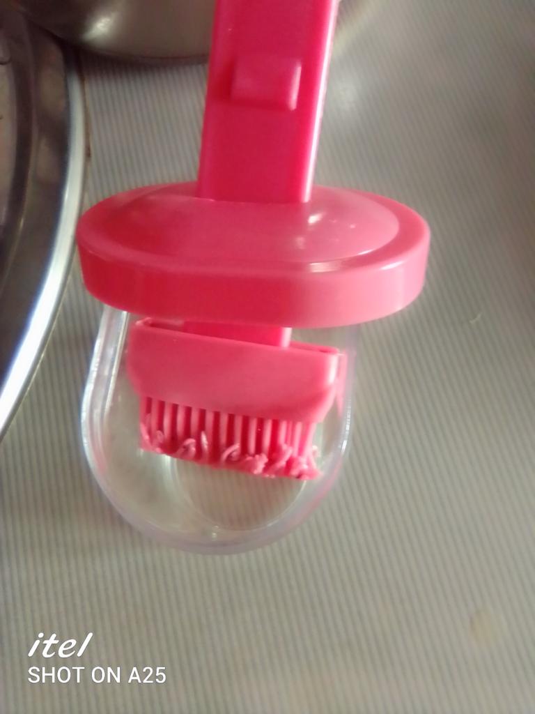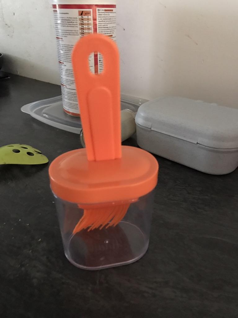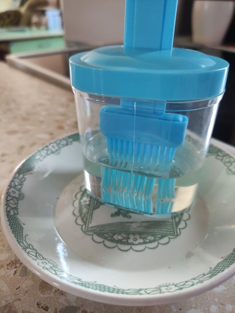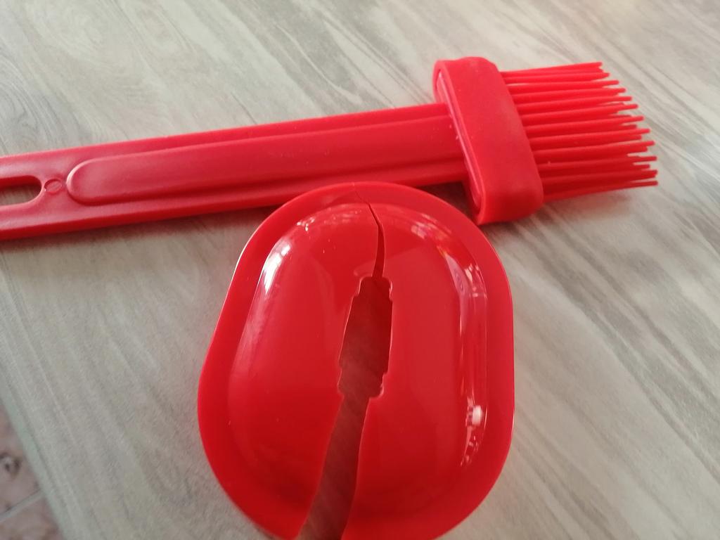 Un recipiente cómodo, siempre echaba el aceite en una taza y usaba un cepillo de silicona, y si quedaba aceite había que verterlo en alguna parte, y aquí todo se combina, muy conveniente.