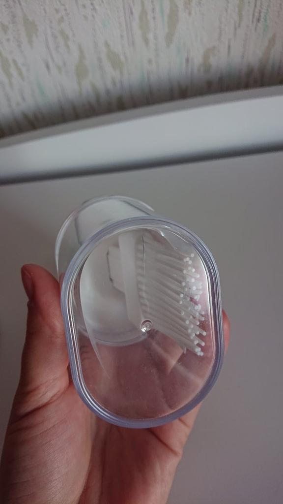 Pedí un cepillo en un frasco azul. , muy conveniente, aunque el cepillo no se sujeta con fuerza en el orificio de la tapa