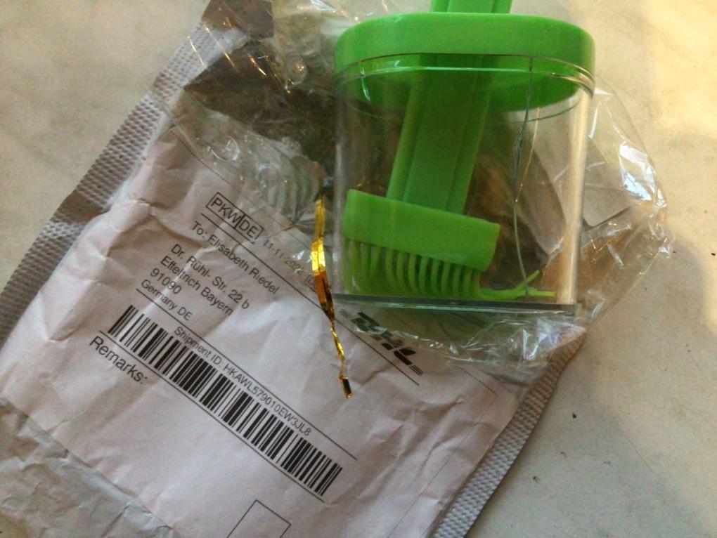 Recibido, probado, cepillo derretido, no apto para su uso. También debes quitarlo junto con la tapa. Hice un agujero más grande y adapté mi pincel.
