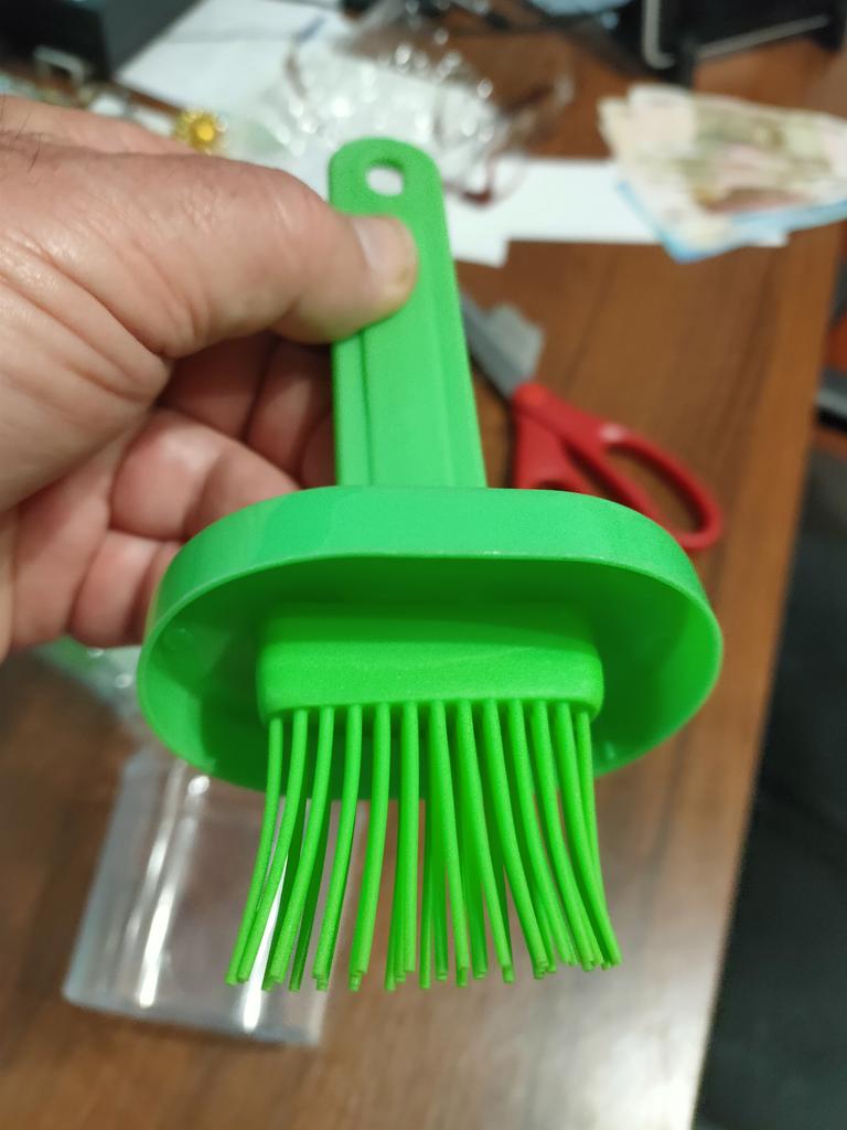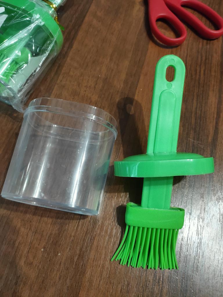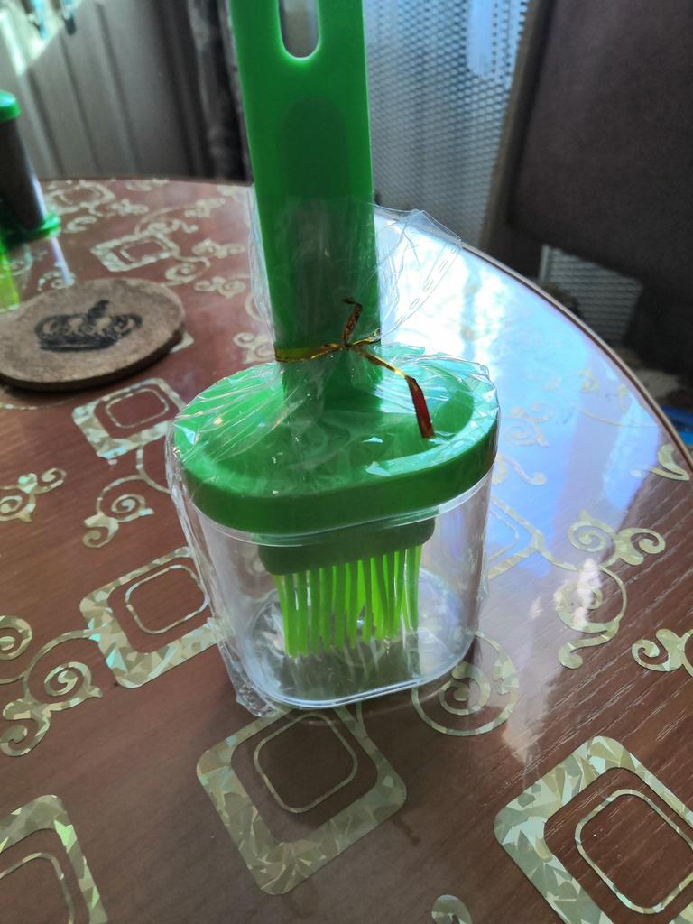 Tenía muchas ganas de recibir este cepillo, algo así es simplemente necesario en todas las cocinas. Tenía un cepillo de aceite con una botella pegada al gay, pero no era muy conveniente porque goteaba constantemente en el punto de conexión, ¡y mis manos siempre estaban en aceite después de usarlo! Creo que todo irá bien con este cepillo. recomiendo