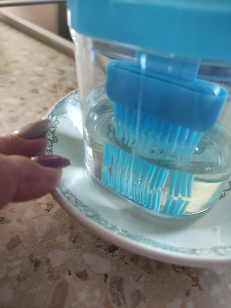 Algo muy necesario en el hogar. Después de usarlo, siempre no sabes dónde poner el cepillo. Yo uso una taza o un frasco. y aquí son dos en uno.