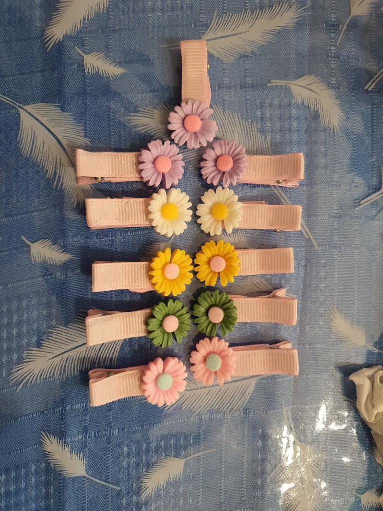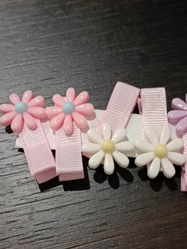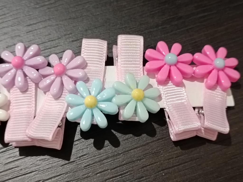 Lindas pinzas para el cabello, el cabello no tira, lo suficientemente apretado. Las flores están hechas de plástico.