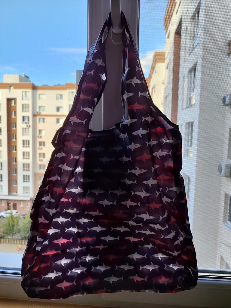 La bolsa es grande, bien cosida, no hay olores extraños. La tela es relativamente delgada y transparente, pero es de esperar que sea duradera. Los mangos son mediocres, debido a su comodidad.