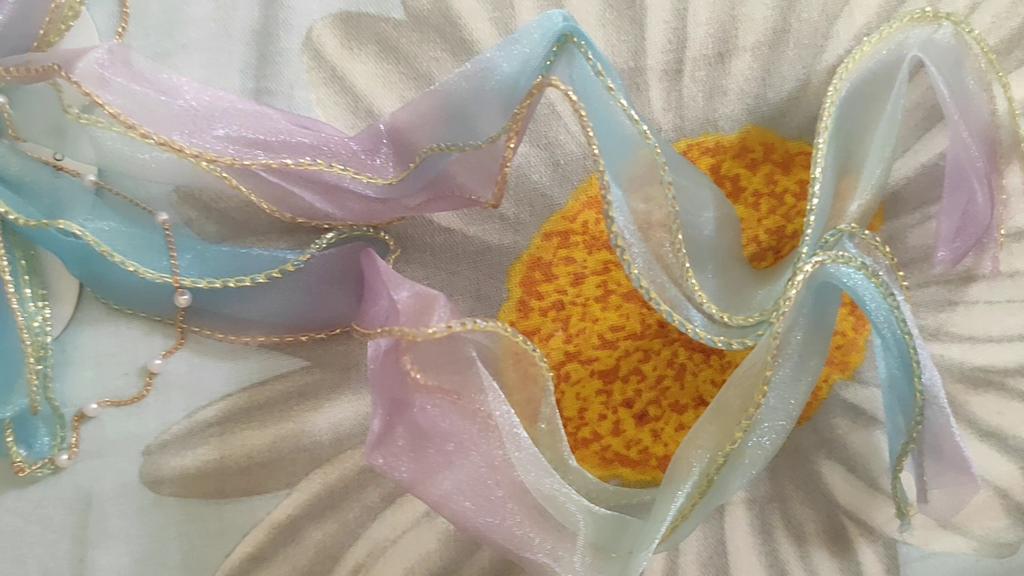 Un lazo hermoso, solo hay que plancharlo un poco. Es una pena que los extremos no estén terminados, gracias.