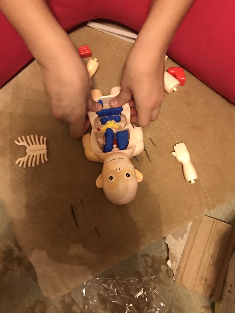 El juguete es genial, más bien para familiarizarse con el cuerpo humano. Las manos y los pies son un poco difíciles de arreglar, para mi hija de 3 años es complicado, por lo demás, un juguete de bastante calidad. recomendar