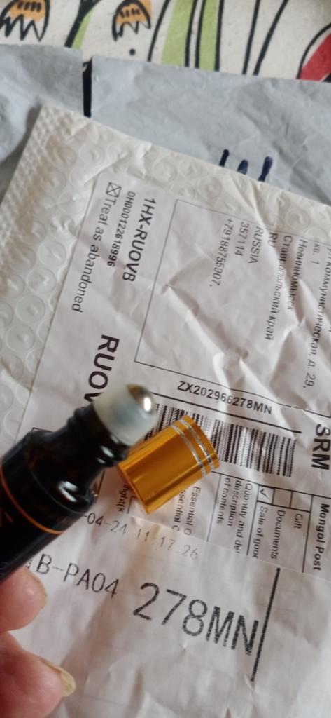 Botella roll-on con maravilloso aceite aromático. El embalaje es excelente. Muchas gracias.