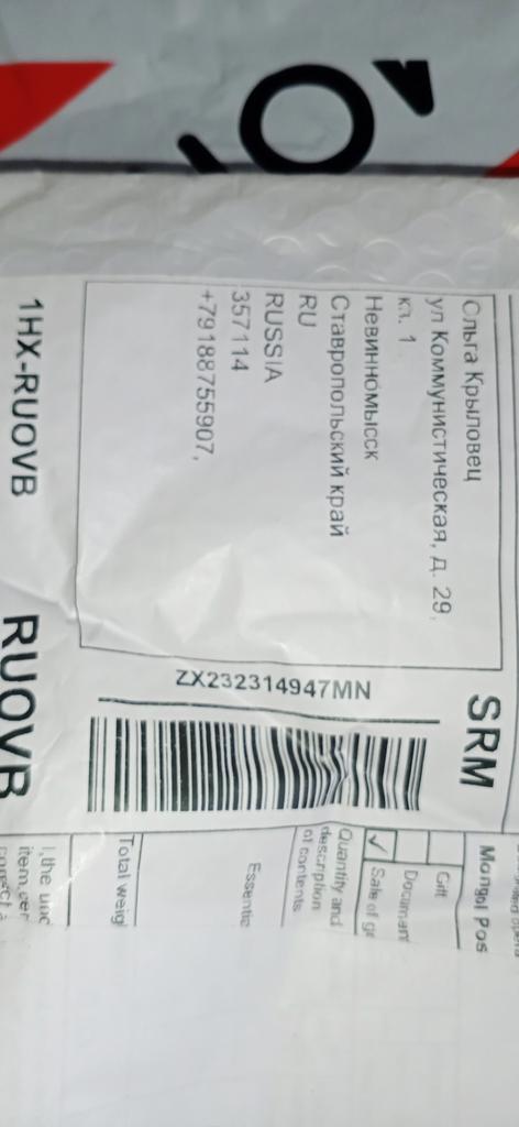 Llegó exactamente la mitad y salió la segunda mitad, todo el pedido ahora tiene un persistente aroma a "estrella" y contiene 13 artículos.