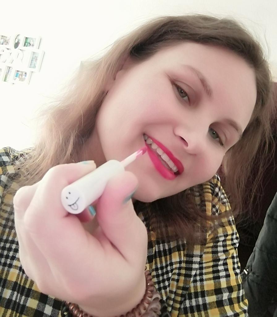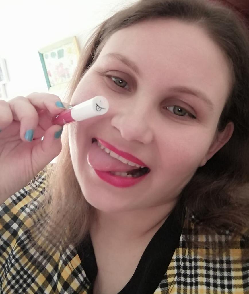 *Labial 💗 . El tiempo de llegada a España fue de 28 días (bastante tiempo para mi gusto) Venía bien envuelto, plastificado. . El recipiente es tipo gloss, el tapón contiene la brochita, el color es como el de la imagen del vendedor un tono rosa fucsia, pedí el 01🤩 Nada más abrir el bote huele increíble como a un aroma dulce. El diseño del bote me gusta (en el tapón pone una carita con lengua) Con una pasada en nuestros labios ya pigmenta muy bien, se seca muy rápido, no mancha (es impermeable tal cual pone en la descripción) Es perfecto para comer y beber ya que no manchamos los vasos ni la comida 🤩🤩 . Me ha gustado mucho así que repetiré con otro color 😍😍