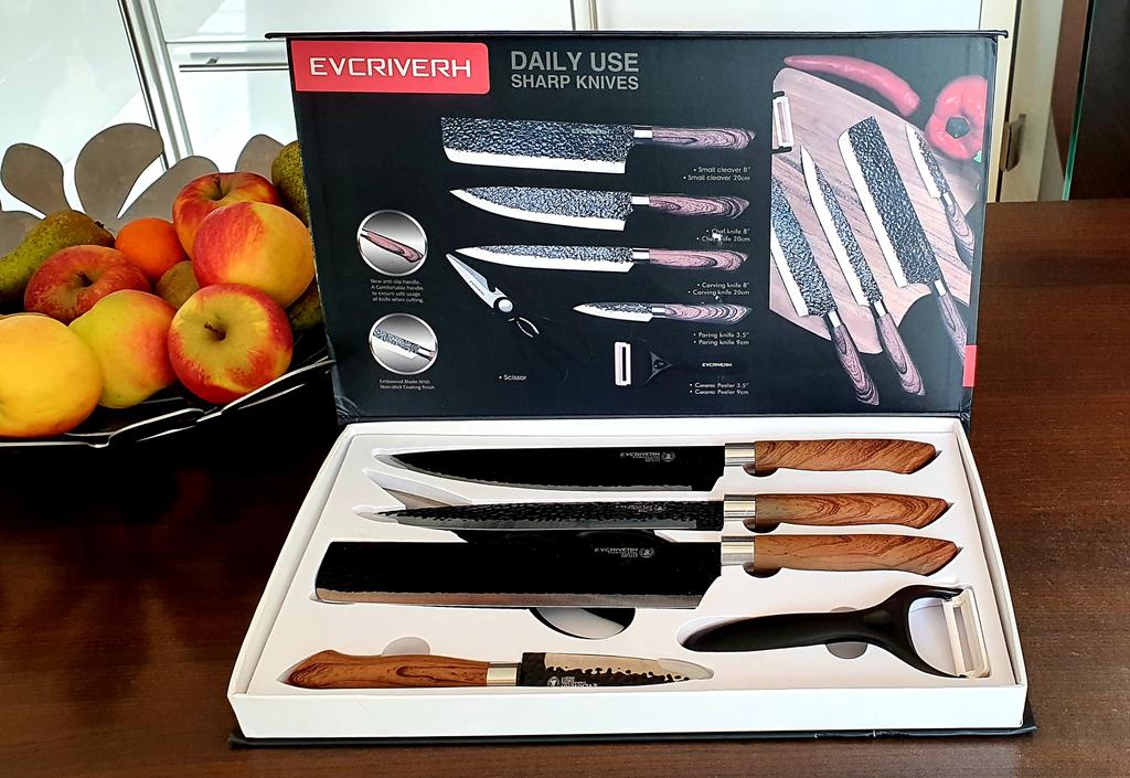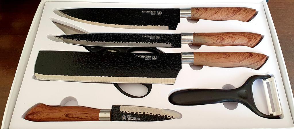 🍆🥕🌽🔪 Gran juego de cuchillos económico 🔪🥕🥦🍆 ✔️ Buena calidad ✔️ El set incluye: 4 cuchillos diferentes, 1 pelador, 1 tijera de cocina ✔️Los mangos son de plástico con aspecto de madera. La hoja está pintada de negro.. ✔️ Los cuchillos son cómodos de sostener ✔️ La hoja está afilada y se puede rectificar si es necesario ✔️ Por este precio creo que el conjunto está completamente bien De mí ⭐️⭐️⭐️⭐️⭐️ Estoy muy satisfecho 🤗 Tu Inge 😘