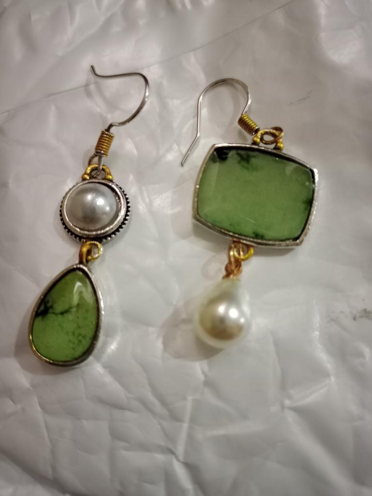 Lo tengo, interesante, asimétrico. Combinados con el vestido quedan perfectos. Simplemente parecen más grandes en la foto, pero en realidad no son tan grandes. ¡En general estoy contento con la compra! 🥰