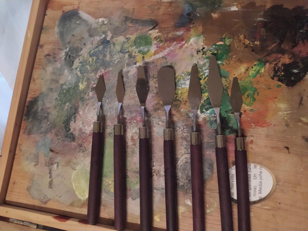 7 unids/set de cuchillos de pintura al óleo de acero inoxidable, artesanías artísticas, espátula, paleta, cuchillo, pintura al óleo, cuchillo de mezcla, raspador, herramientas de arte